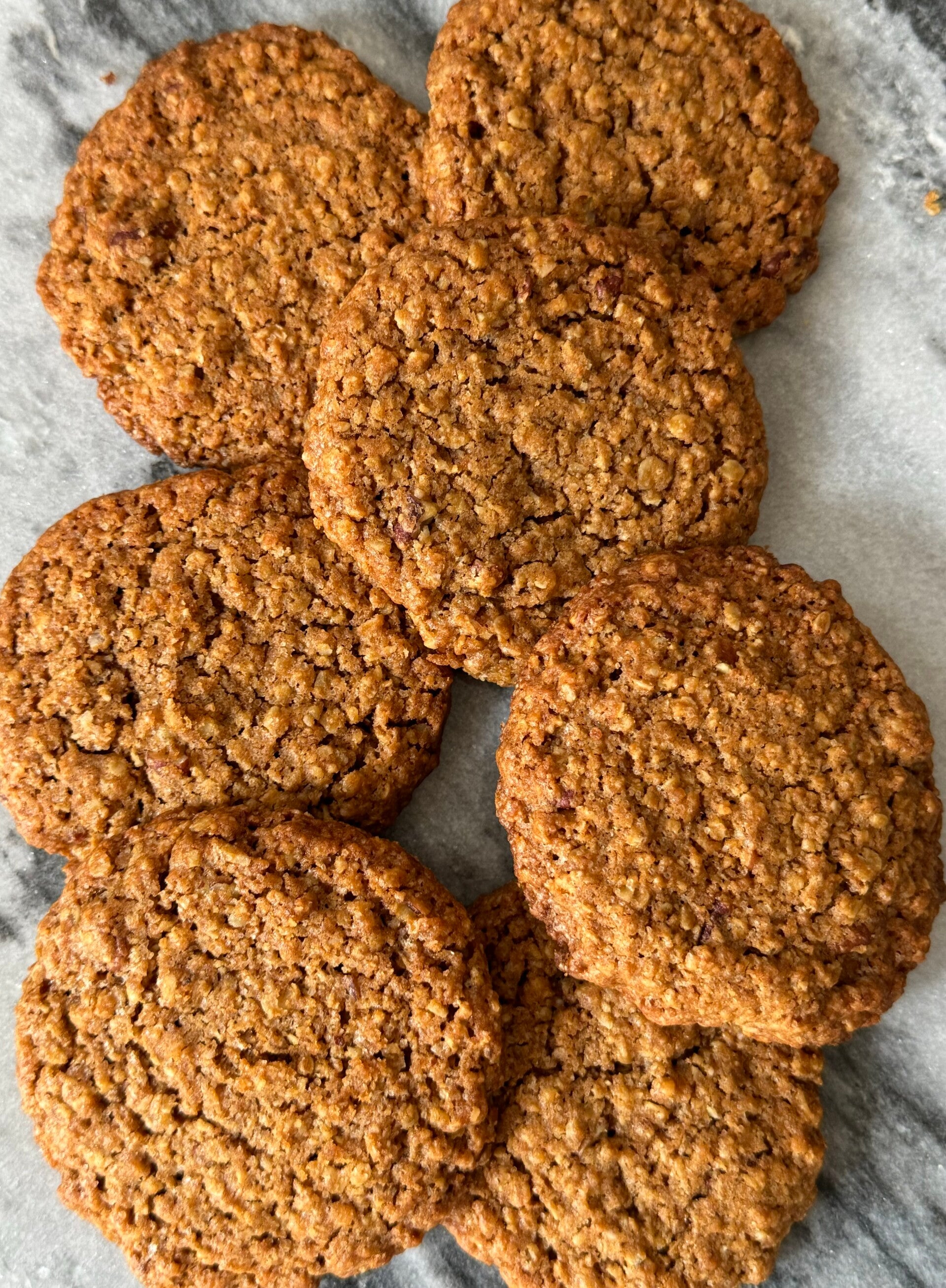 10 havermoutkoeken met pecannoten bij jou door de brievenbus.
